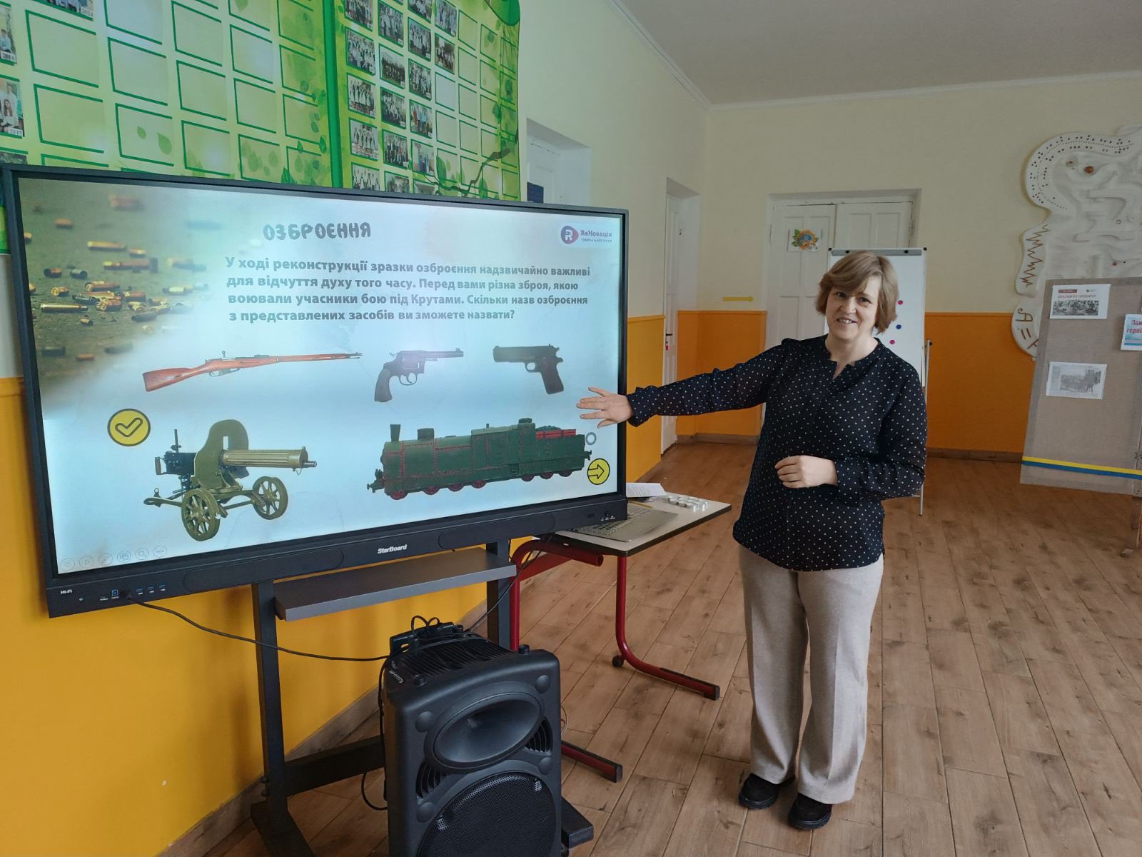 Вчитель історії Литвинюк Надія Сергіївна представила пізнавальну презентацію, під час якої учні ознайомилися з подіями бою під Крутами, його історичним значенням та символікою для сучасної України.